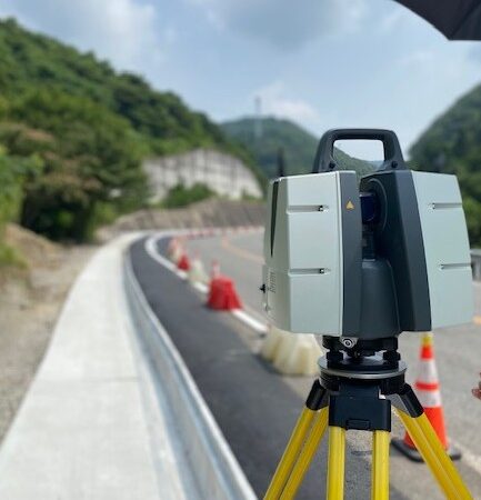 P40使用の出来形測量で、二度目の広島へ行ってきました 工事が進められ、きれいに舗装されていました 右奥に見え …